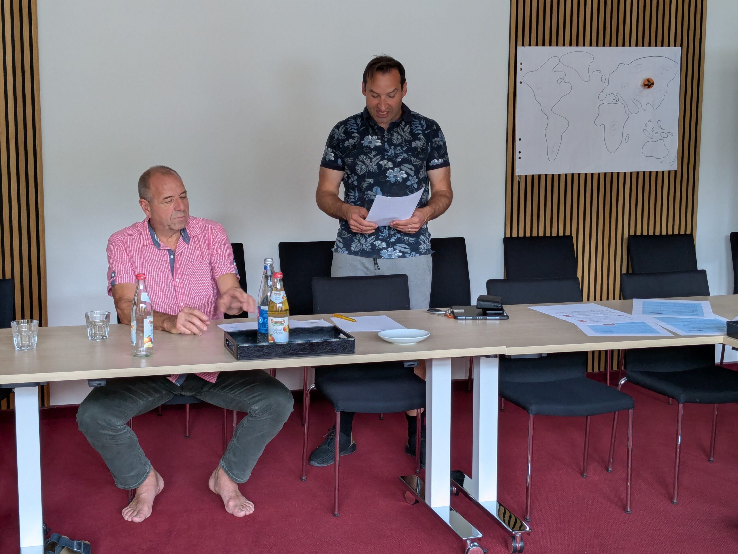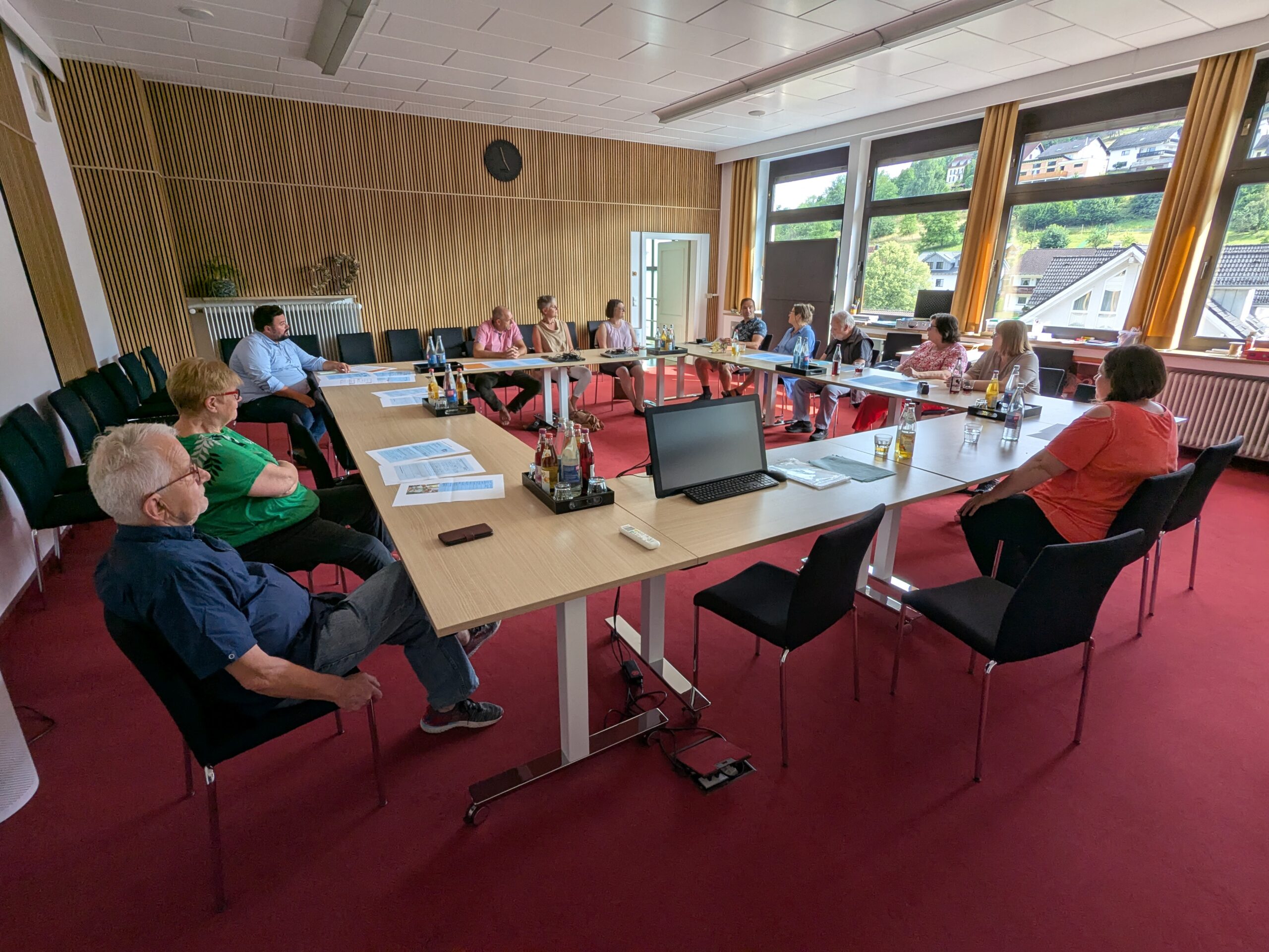 Es geschah im Rathaus Leidersbach, Sitzungssaal: Die Projektgruppe Demokratie hat sich einmal mehr getroffen, um die spielerische Elemente für ein „Fest der Demokratie“ auszuarbeiten. Vom Ratespiel über Großpuzzle bis Selbst- und Fremdwahrnehmung sind tolle Ideen auf den Weg gebracht. Mit diesem Thema war es natürlich ein besonderes Geschenk, von Bürgermeister Michael Schüssler an eine zentrale Wirkstätte der Demokratie eingeladen zu sein.