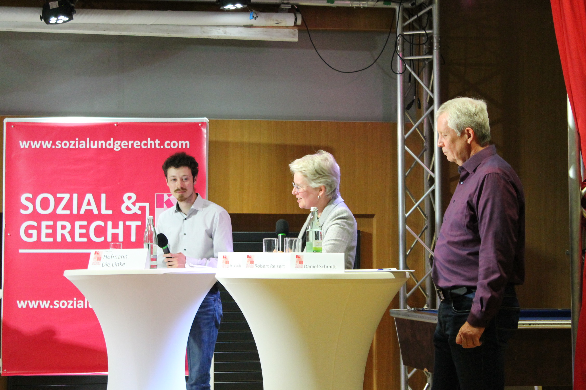 Iris Müller und Robert Reisert engagieren sich beide als „KAB-Soziallotsen“ und hatten sich gemeinsam mit dem KAB-Arbeitsrichter Günter Schmitt das Themenfeld „Faire Bezahlung und soziale Sicherung“ vorgenommen. Schon bei der Forderung zur Anhebung des Mindestlohnes kam es zum Schwur: FDP und CSU nahmen Abstand von Eingriffen der Politik, wollten aber auch keine Gesetzesinitiative zur Tarifbindung angehen. FW, Grüne, Linke und SPD sehen dagegen die Notwendigkeit, dass der Mindestlohn so gestaltet sein muss, dass eine Person weder heute noch am Ende der Erwerbstätigkeit im Armutsrisiko landet.