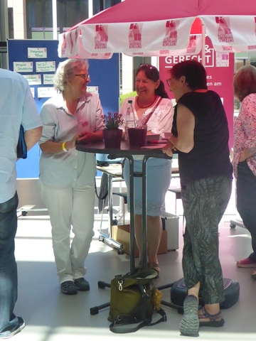 Die Projektgruppe „Gesundheit und Pflege“ ist aus der „Open-Sozial – Plattform für soziales Engagement“ hervor gegangen und hat sich den Kampf für bessere Bedingungen in der Pflege zum Ziel gesetzt. Die Beteiligten sammelten an ihrem Stand Meinungen und politische Forderungen zur Verbesserung der stationären und häuslichen Pflege im Landkreis Miltenberg: Flexible Arbeitszeitplanung, qualifizierte Kolleg:innen, Freistellung für Ausbildungen waren einige der Forderungen an der Pinnwand, um Pflegekräfte aus dem Limit zu holen. Außerdem: Für pflegende Angehörige wurde ein leichterer Zugang zu Informationen und Beratung als notwendig erachtet.