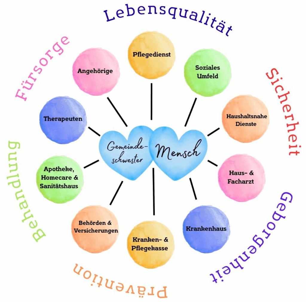 - Netzwerkarbeit zu Arztpraxen, Pflegediensten, Nachbarschaftshilfen, Seniorenbeiräten